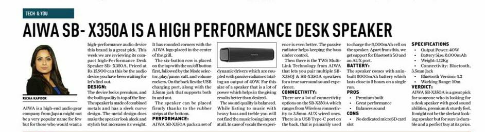AIWA SB-X350A News Article Review